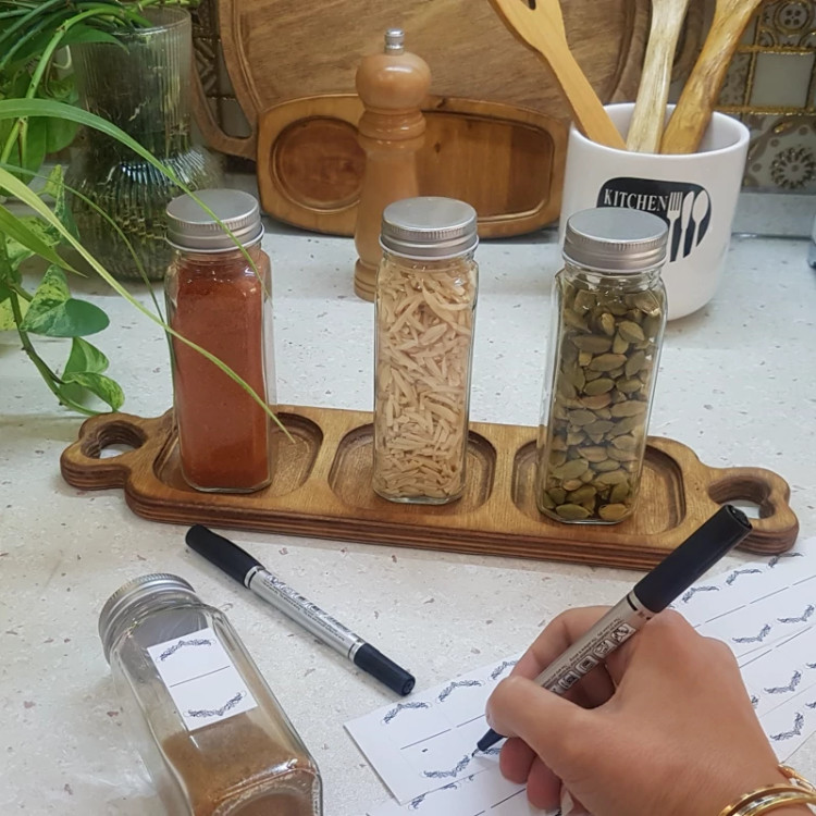با ماژیک سی دی میتونید روی لیبل های بدون نوشته اسامی دلخواه ادویه ها،حبوبات و سبزیجات خشک و مواد داخل فریزر رو بدون نگرانی از پاک شدن اون خودتون به دلخواه خودتون بنویسید💫 این نوشته بعداز خشک شدن با آب پاک نمیشه و اینجوری شیشه هارو راحت میتونید بشورید