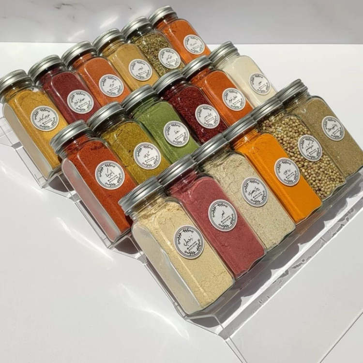 پک 18 عددی شیشه ادویه پاش مک کارتی 12 سانتی با 3 عدد استند 18 عدد سری ادویه پاش و 18عدد لیبل