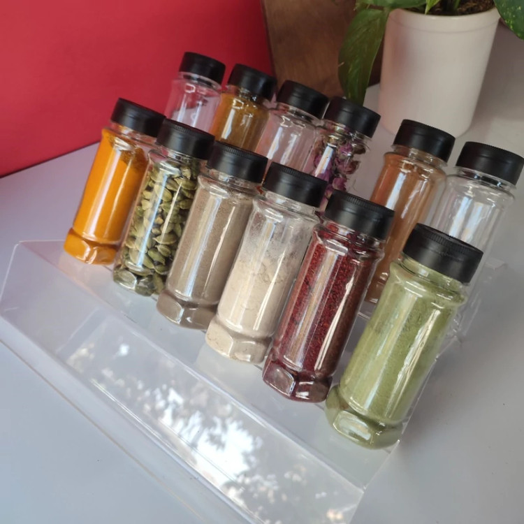 ست 6 عددی پت ادویه پاش پلاستیکی استوانه ای با 6 عدد لیبل ضد آب در المارکت